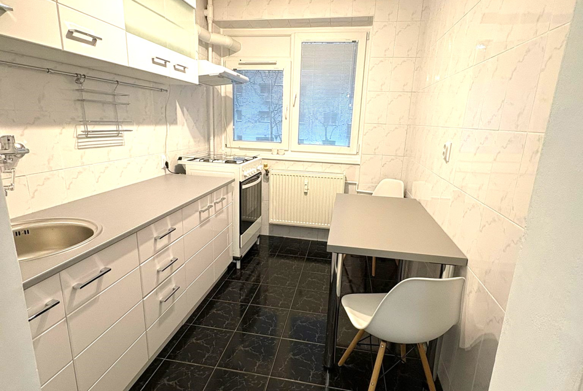 – Bucătărie separată, complet mobilata, utilată frigider combină, cuptor, plită, hotă