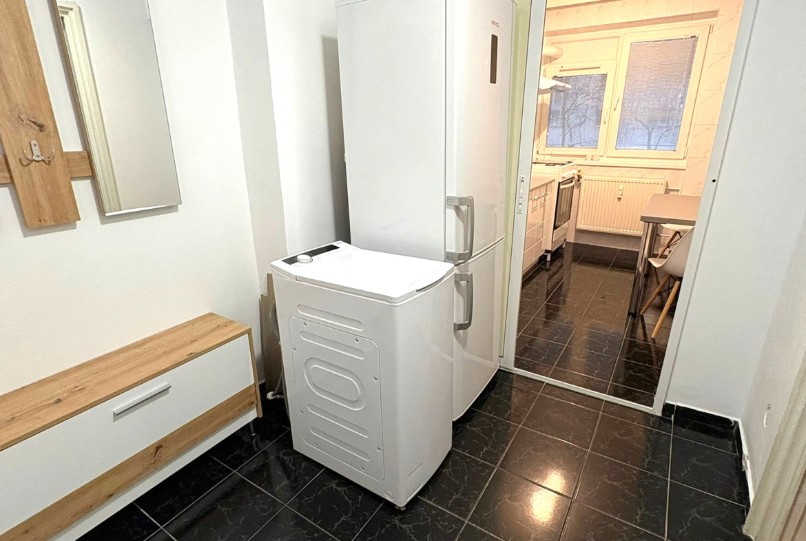 – Mașina de spălat rufe montată pe hol, lângă frigider combina