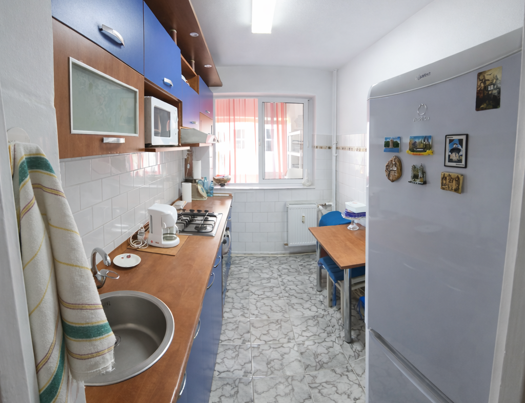 MOBILARE: Complet mobilat și utilat, inclusiv TV LCD, electrocasnice și conexiuni active DIGI pentru cablu și internet, cu router Wi-Fi instalat.