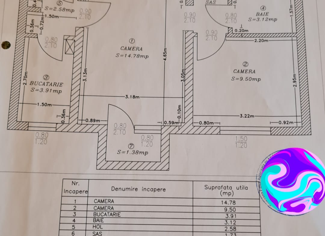 Imobilul este confort 2, semidecomandat si se intine pe o Sut de 37mp si o Sc de 45mp, an constructive 1974. In compartimentarea acestuia regasiti un balconas deschis pe sufragerie, precum si BAIE cu CADA si GEAM pentru aerisire.