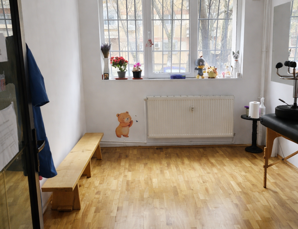 DOTĂRI: Spațiul este COMPLET ECHIPAT și autorizat pentru activitate, fiind pregătit pentru continuarea imediată a serviciilor de kinetoterapie pediatrică.