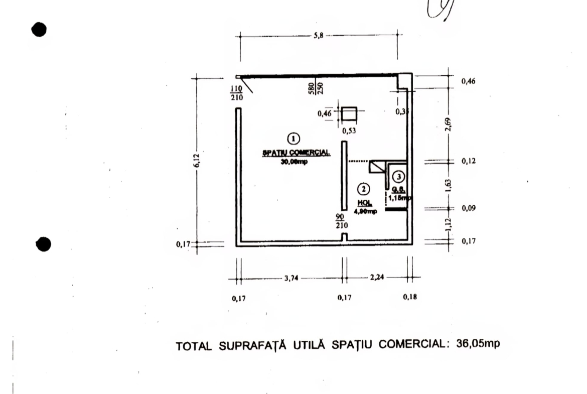 SPAȚIU: S. utilă de 36 mp și Scd 42 mp. Zonă principală deschisă de aproximativ 30 mp, ușor de amenajat în funcție de activitate.