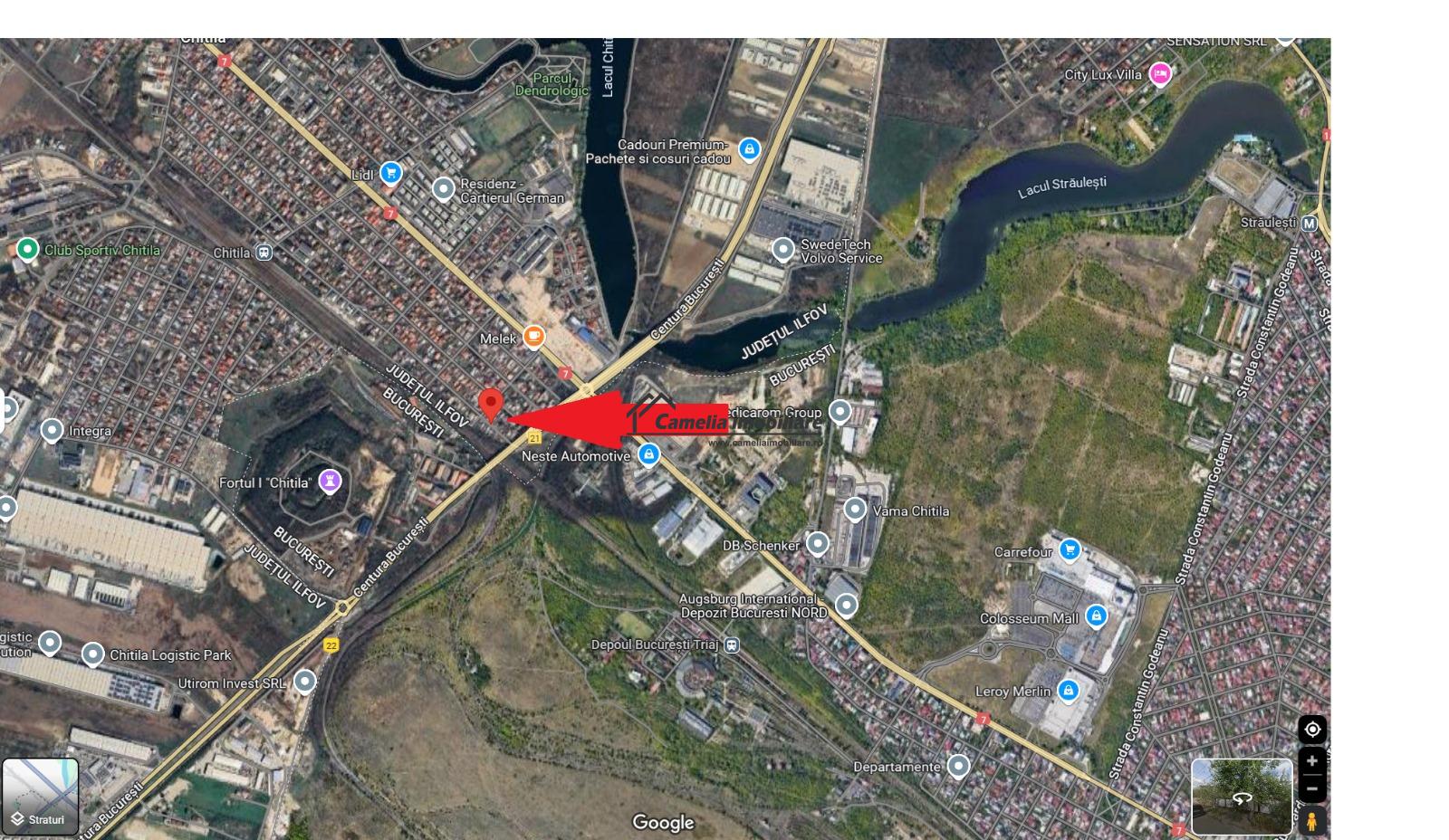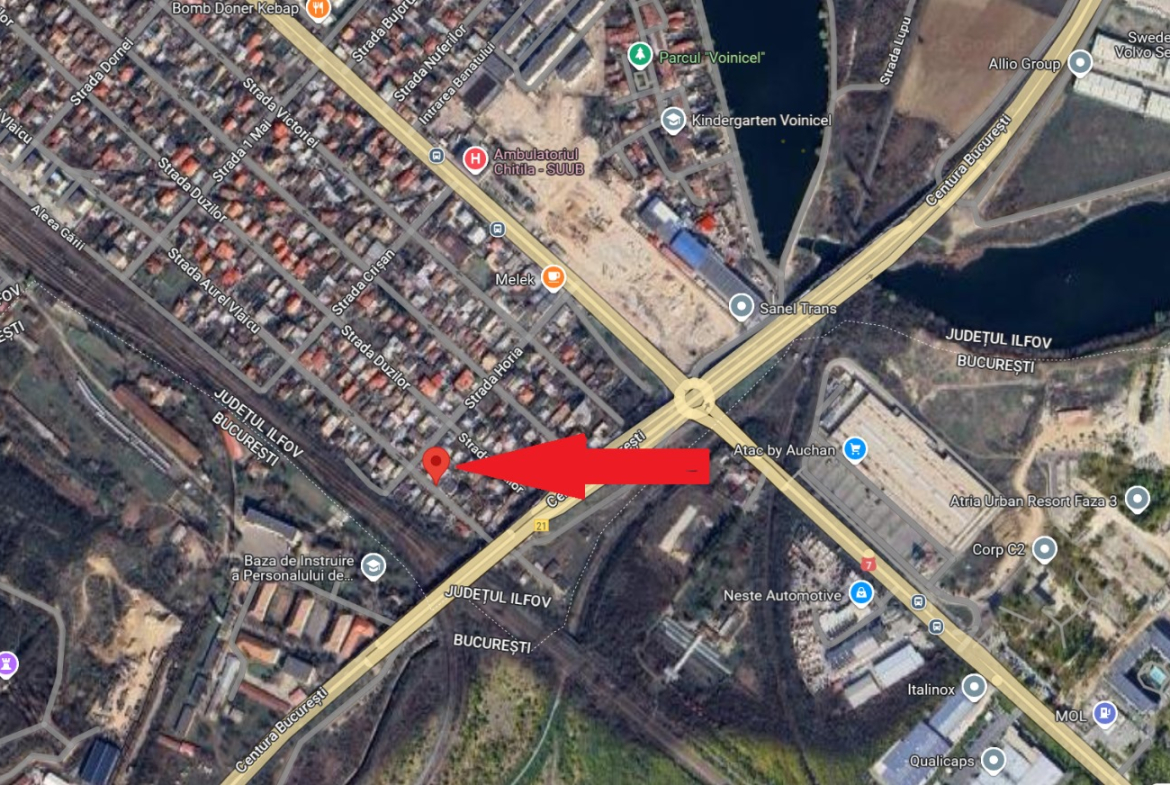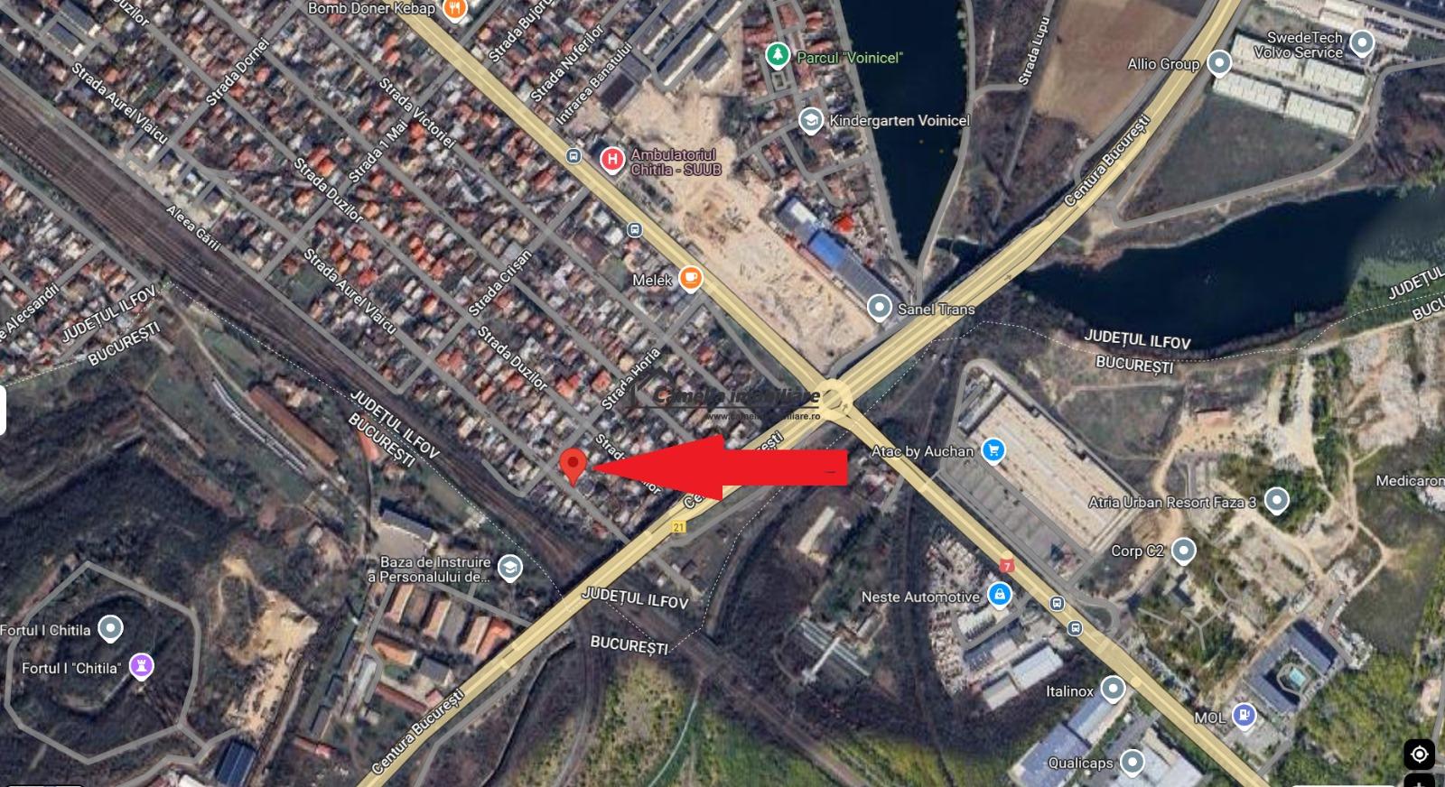 LOCATIE ȘI ACCES: Situat în Chitila, Ilfov, pe strada Aurel Vlaicu, nr. 117B, în zona rezidențială. Accesul se face pe o stradă asfaltată, cu sens unic și iluminat stradal, având o lățime de 8 ml pentru accesul auto.